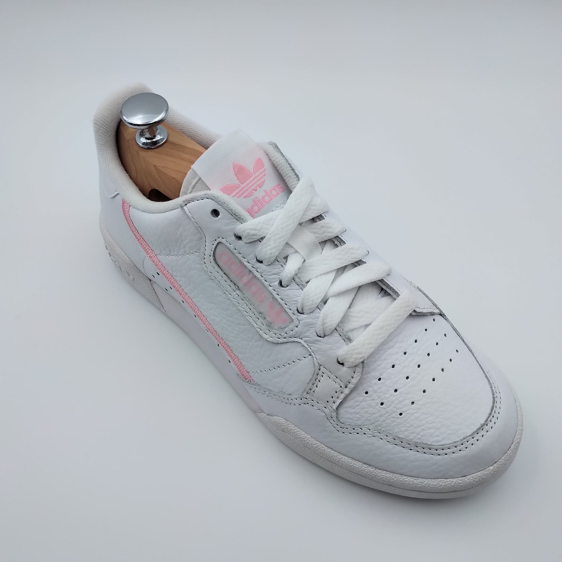 Adidas Continental 80 cuir blanc et bandes roses