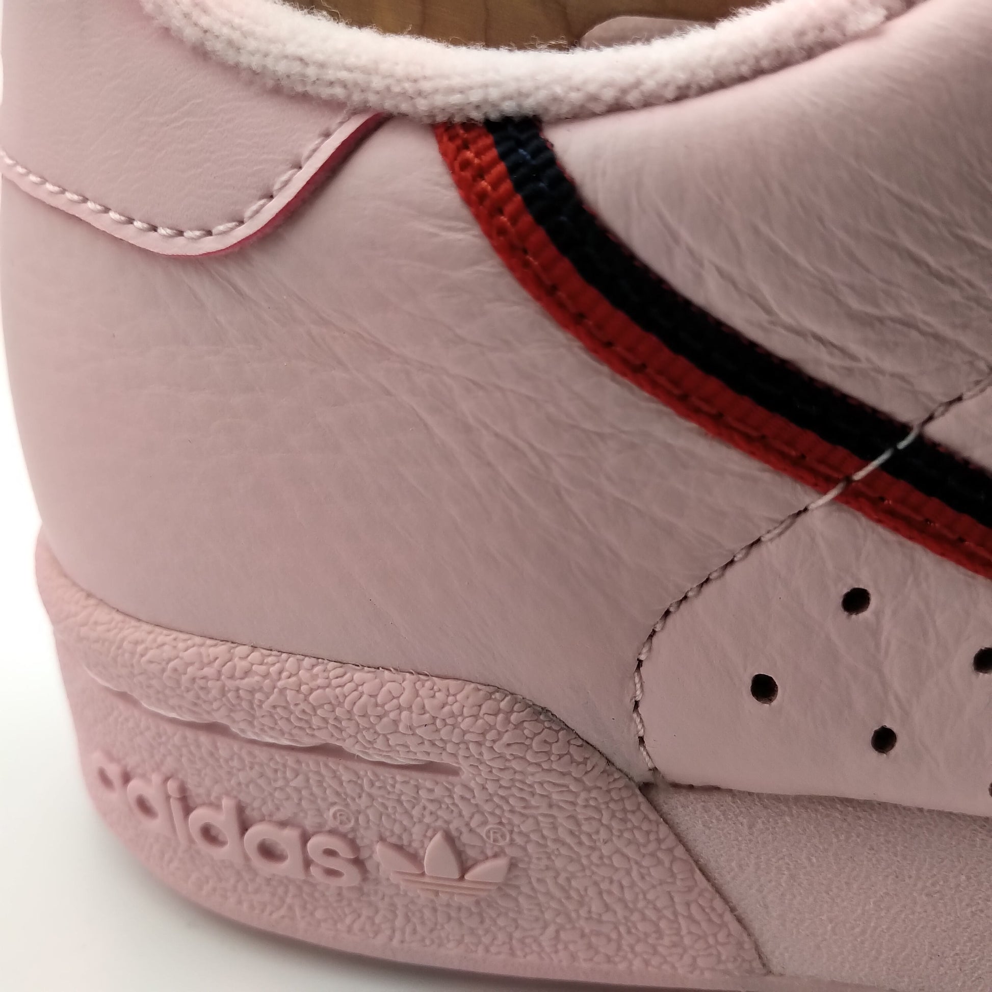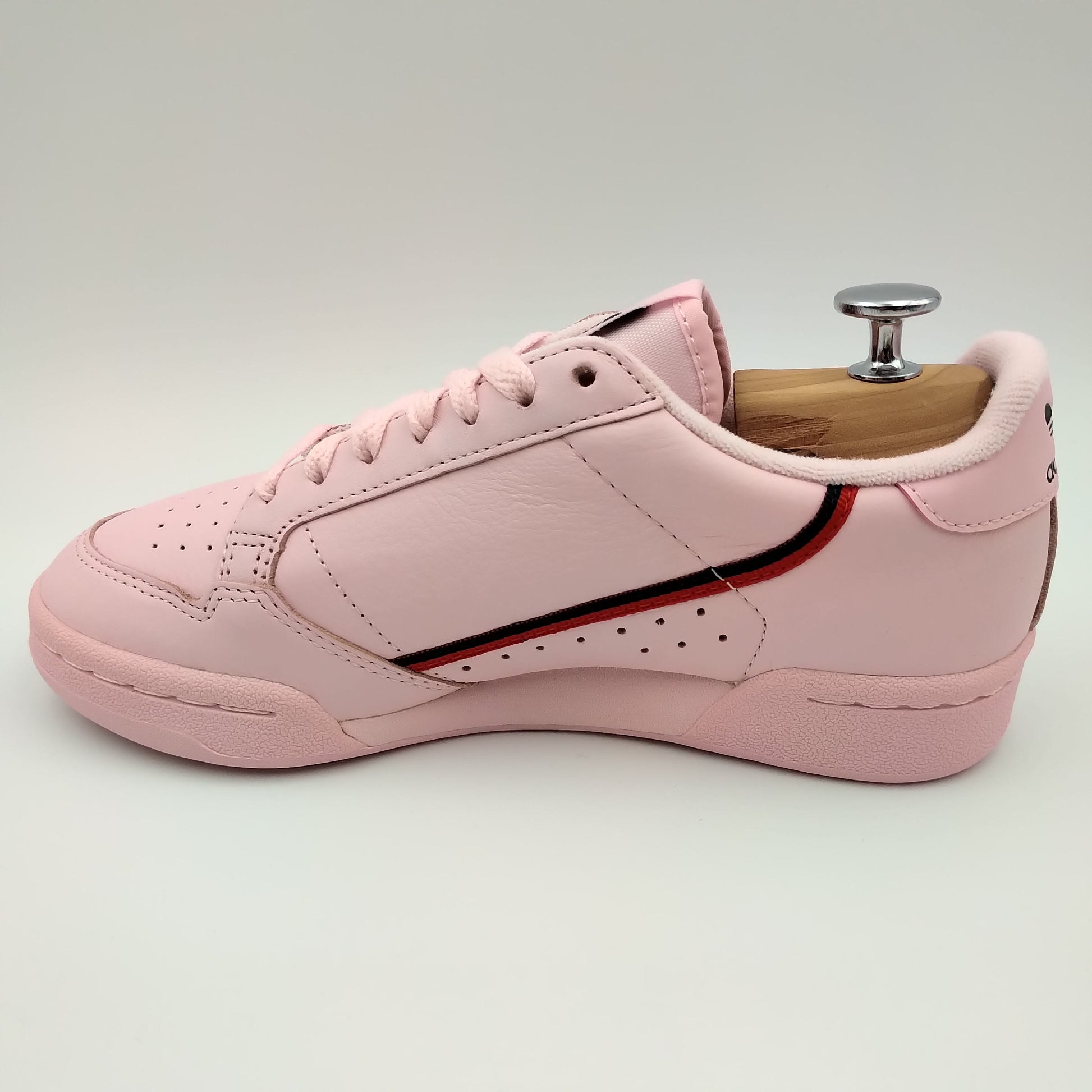 Adidas Continental 80 cuir rose et bande noire et rouge