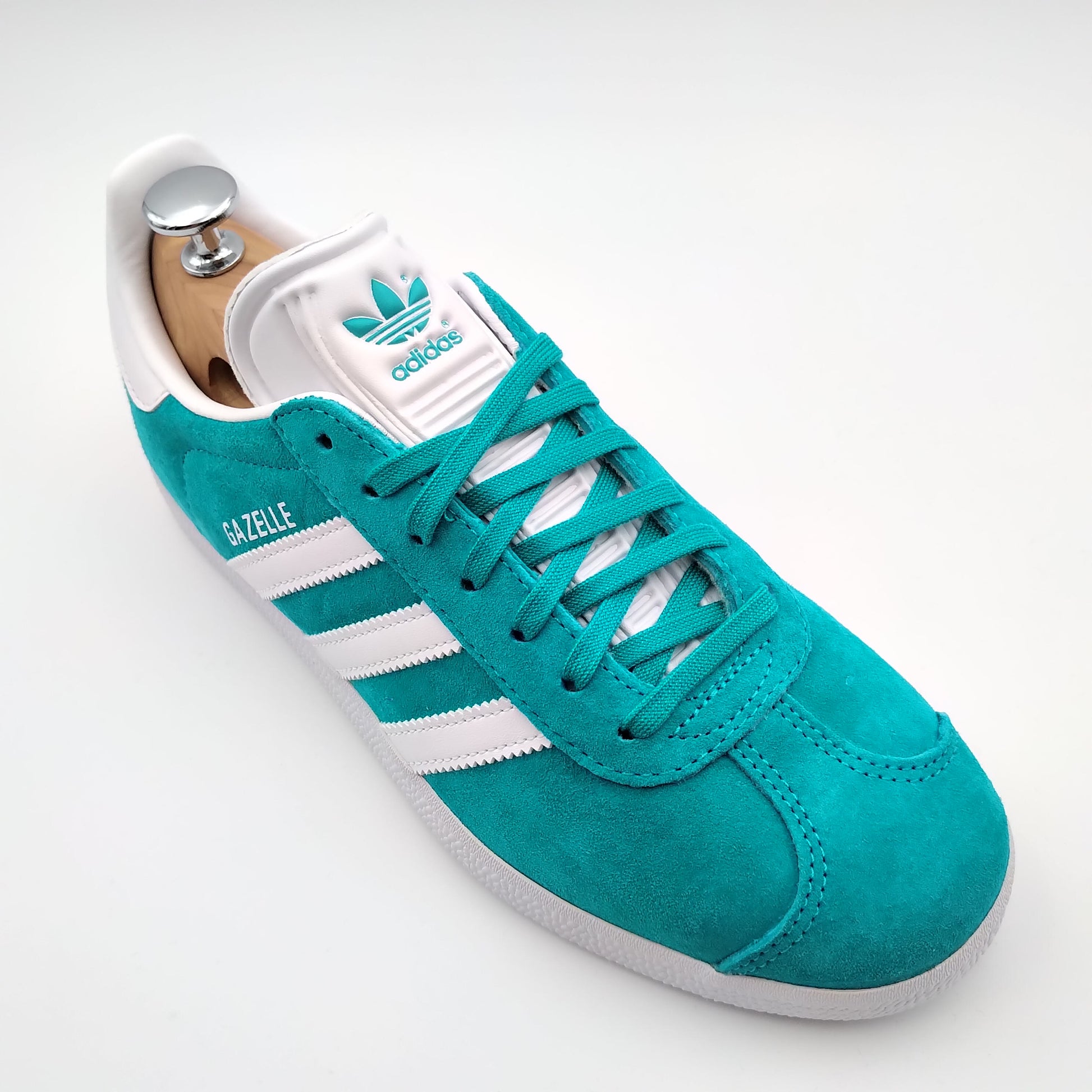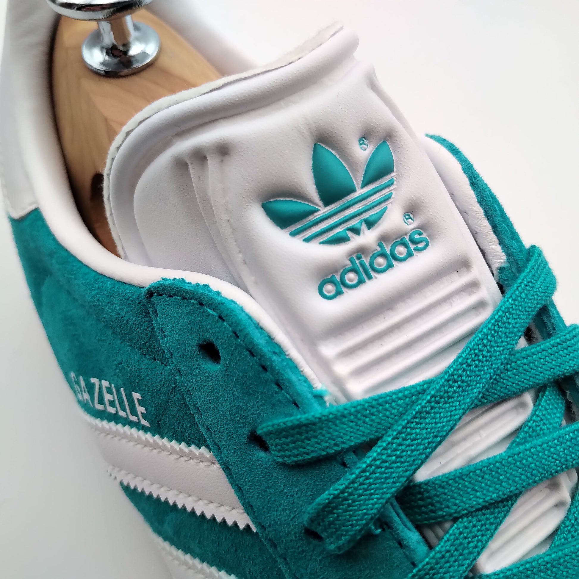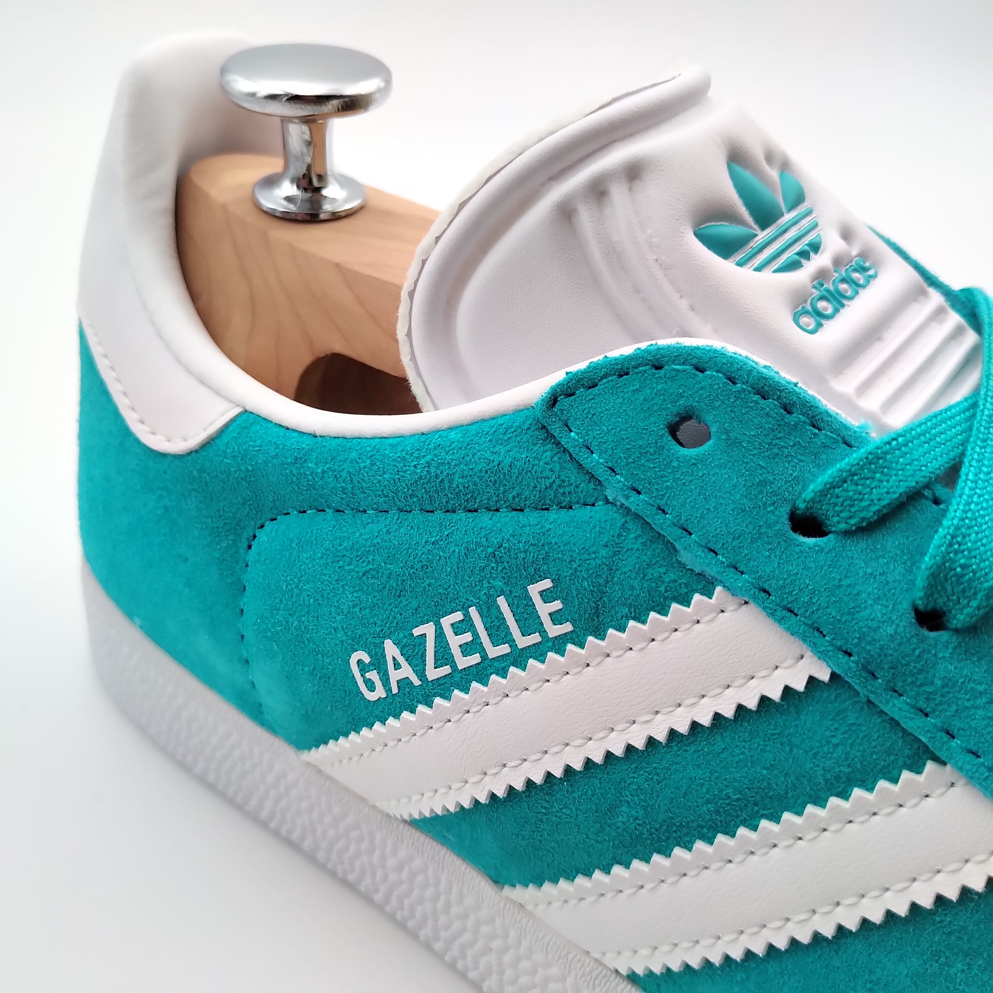 La réputation du modèle Gazelle d'Adidas n'est plus à faire. Avec sa languette du dessus nervurée, elle réunit confort et style intemporel depuis bien longtemps. Ce modèle est est de couleur verte émeraude.