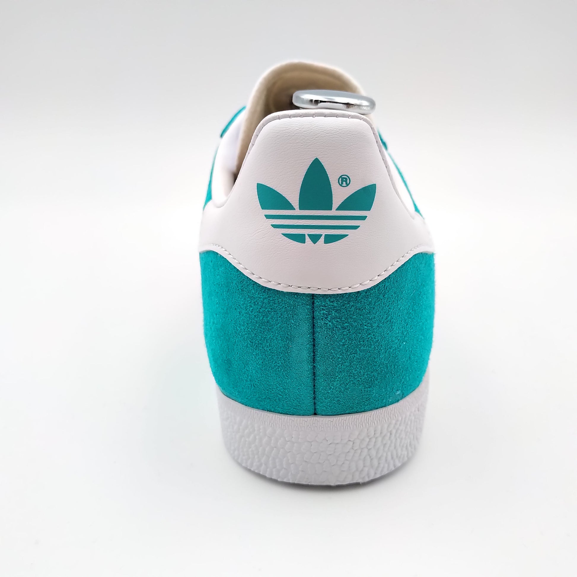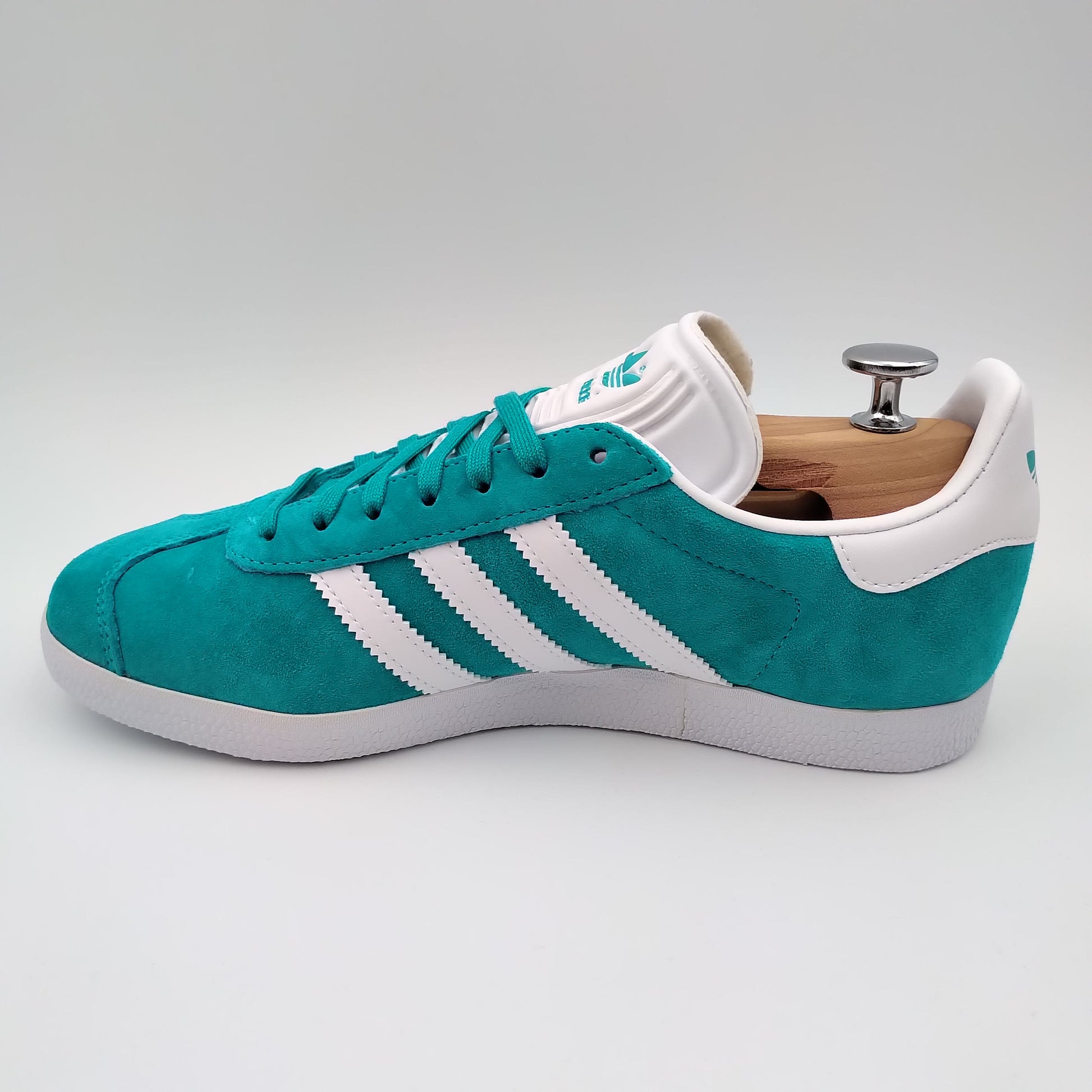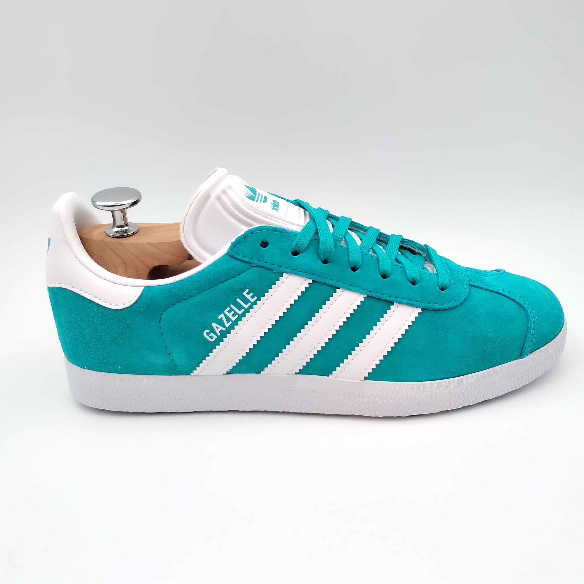 La réputation du modèle Gazelle d'Adidas n'est plus à faire. Avec sa languette du dessus nervurée, elle réunit confort et style intemporel depuis bien longtemps. Ce modèle est est de couleur verte émeraude.