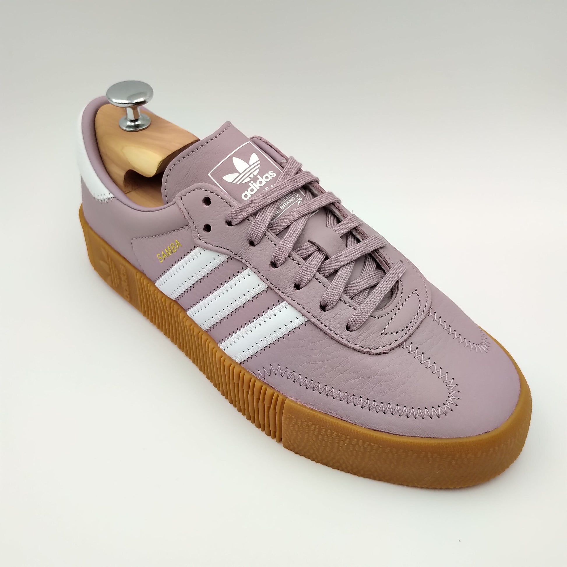 Adidas Sambarose cuir rose et bandes blanches