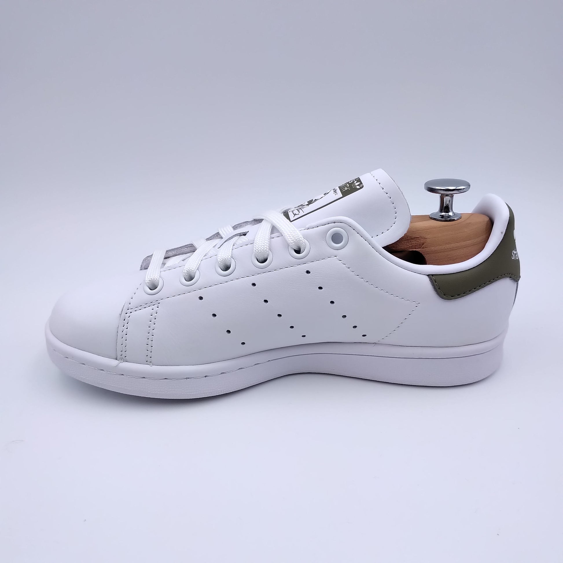 Paire intemporelle qui a traversée les époques et les modes successives, le modèle Stan Smith est toujours aussi confortable et durable. Cuir blanc et talon kaki.