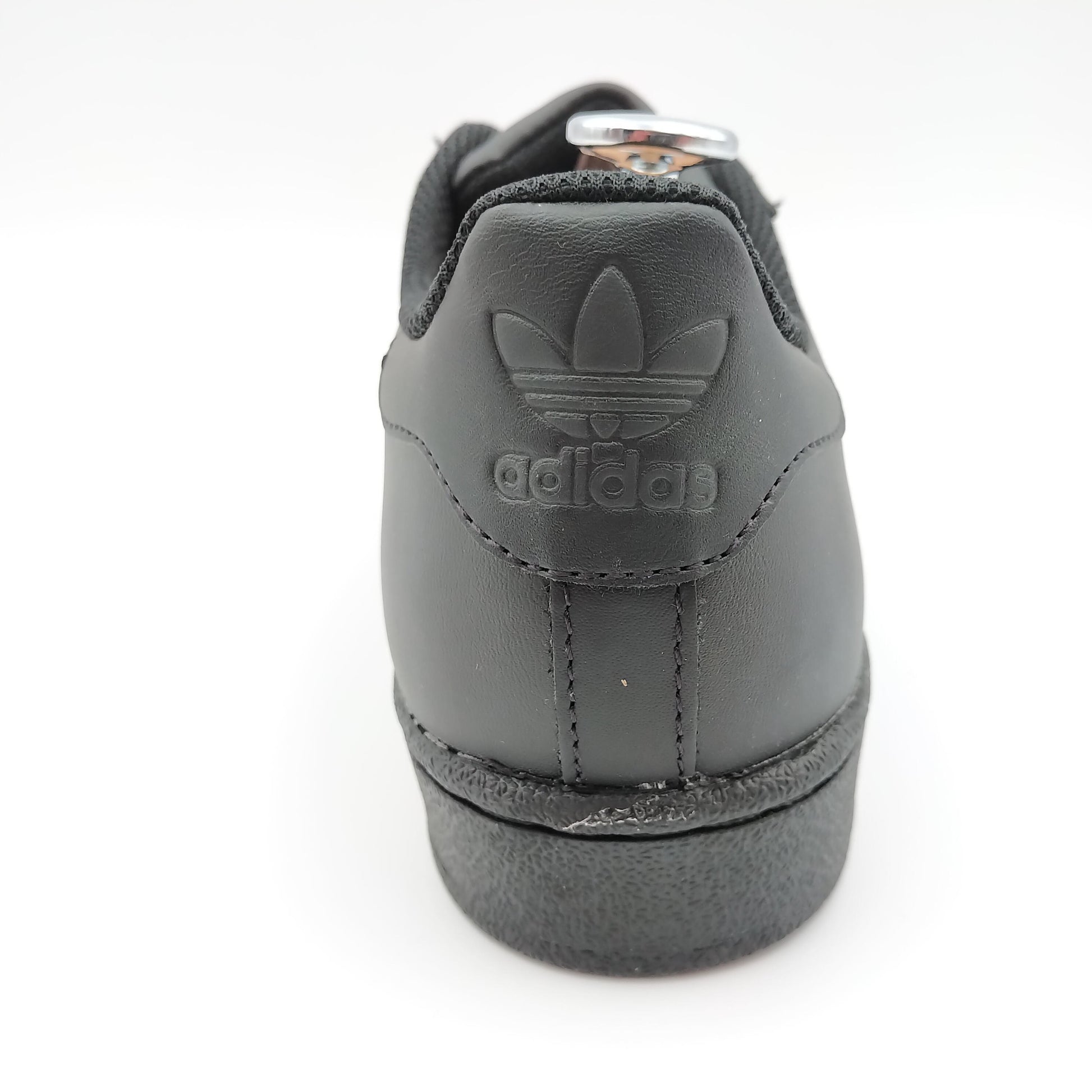 Le modèle Adidas Superstar débute sa carrière dans les années 1970 avec la NBA aux États-Unis, elle fut ensuite adoptée et démocratisée par le milieu Hip-Hop et depuis la référence mondiale de la paire de baskets tendance est toujours d'actualité. Ce modèle est intégralement noir.