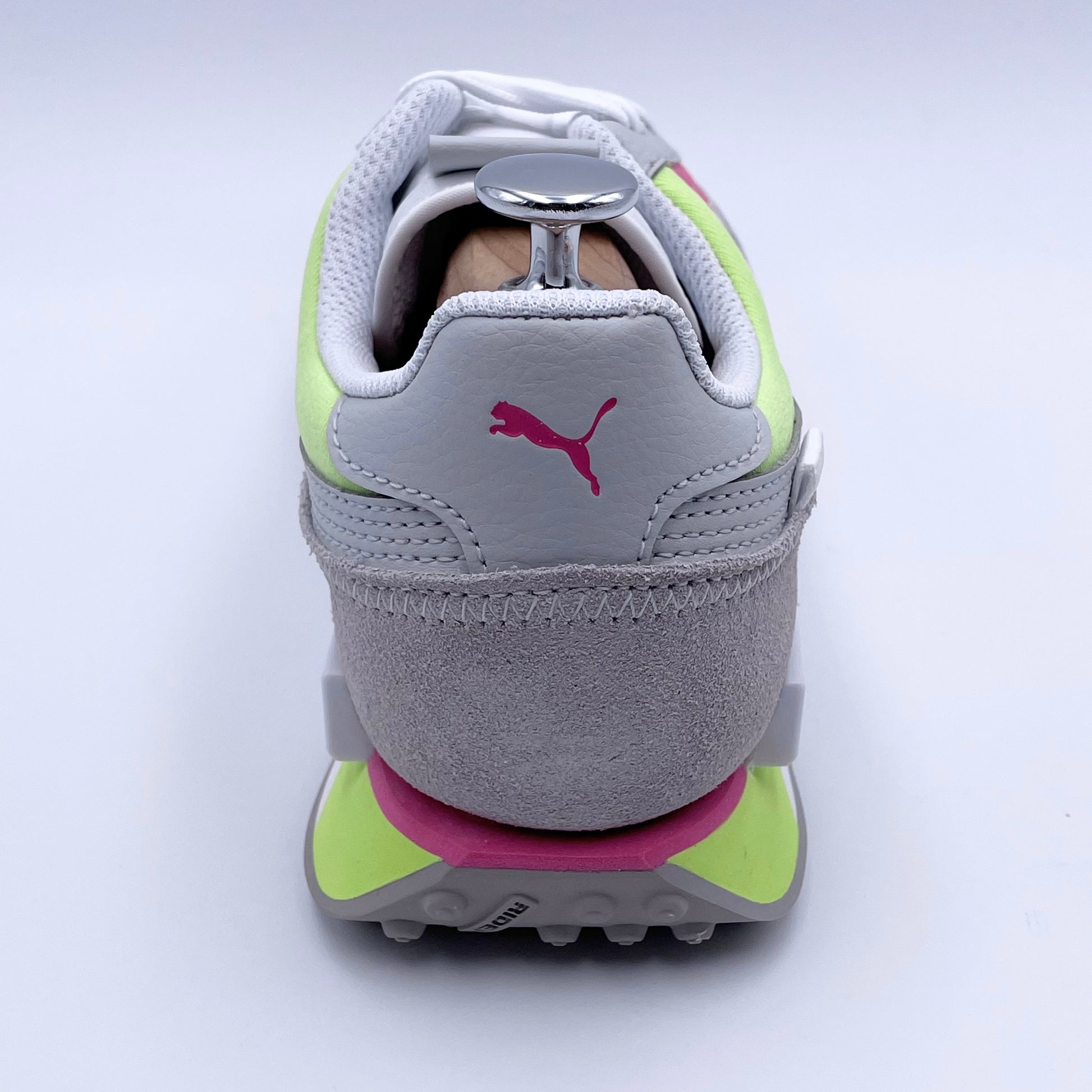 Ce modèle Puma Future Rider Neon Play reprend une silhouette streetwear classique et des couleurs vives pour un look inimitable. Confort et bon amorti sont au rendez-vous. Modèle mixte.